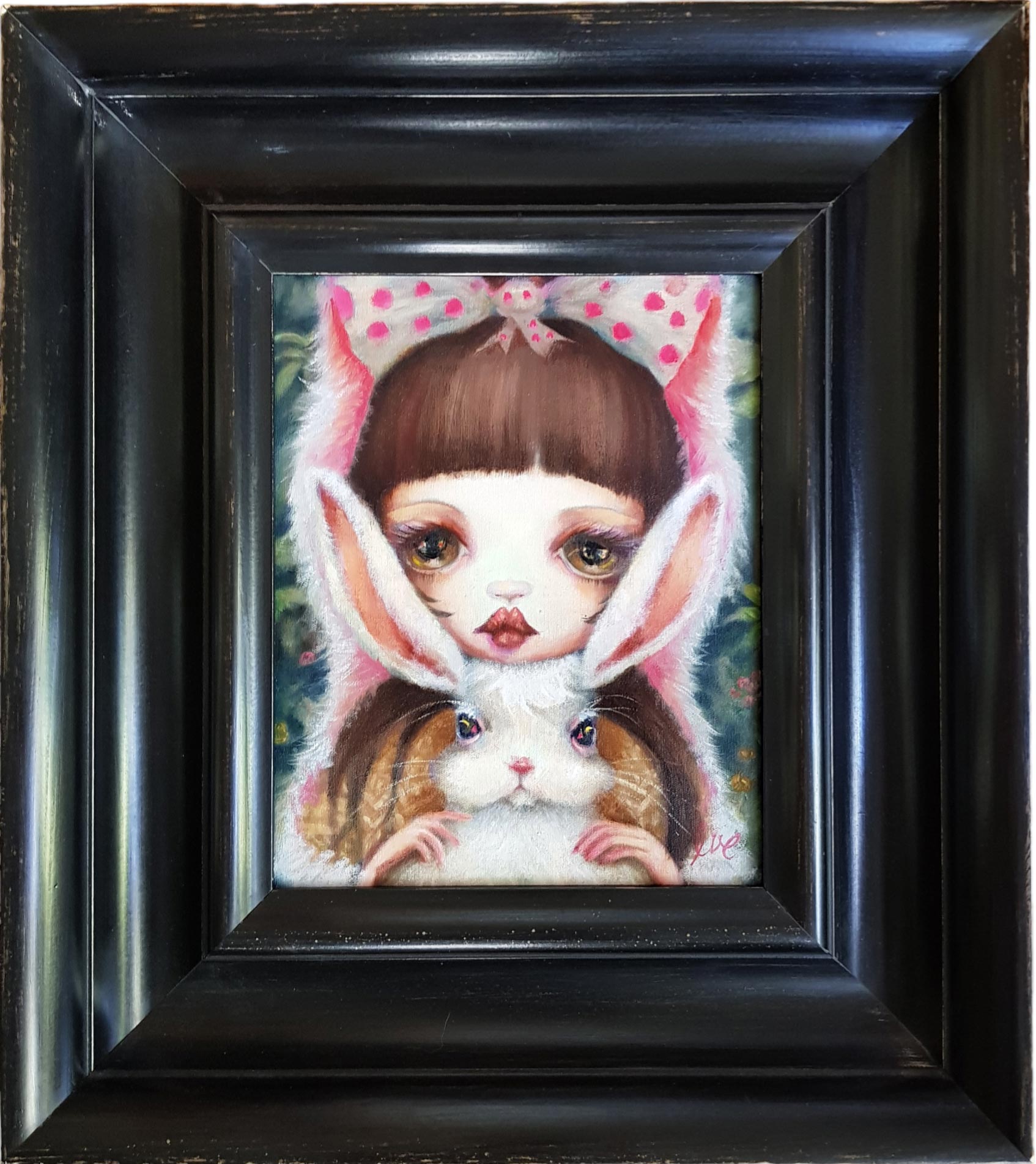 'She shares the bunny's heart, a gentle beat, A kindred spirit, wild and sweet.'