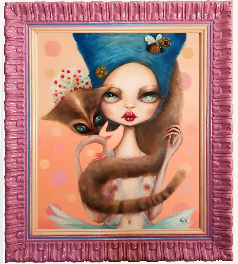 A dancer's grace, a surreal sight, A creature strange, bathed in light. A possum's love, a gentle hold, A whimsical tale, to be told.