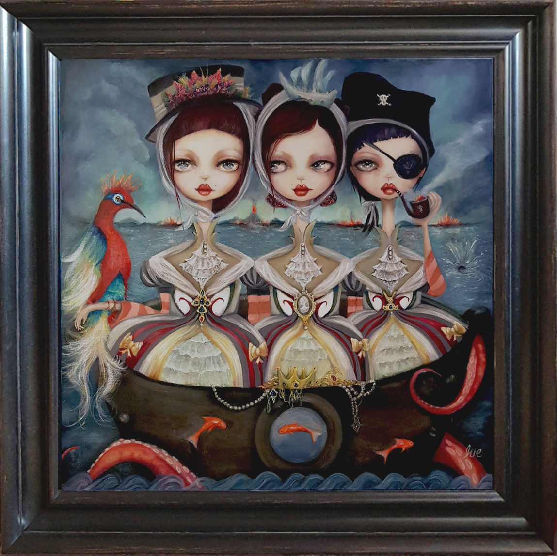 Upon the midnight tide, a vessel gleamed,Three sirens, dark-eyed, their laughter screamed. A heist well-done, their prize within, Jewels of fortune, a glittering sin.