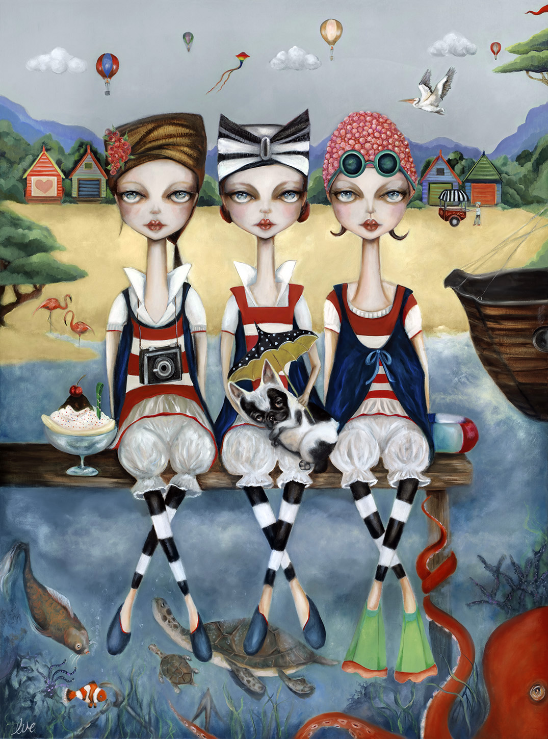 Golden sands, a gentle breeze,Three hearts at ease, by the seas.With furry friend and sundae sweet,A day so perfect, can't be beat.