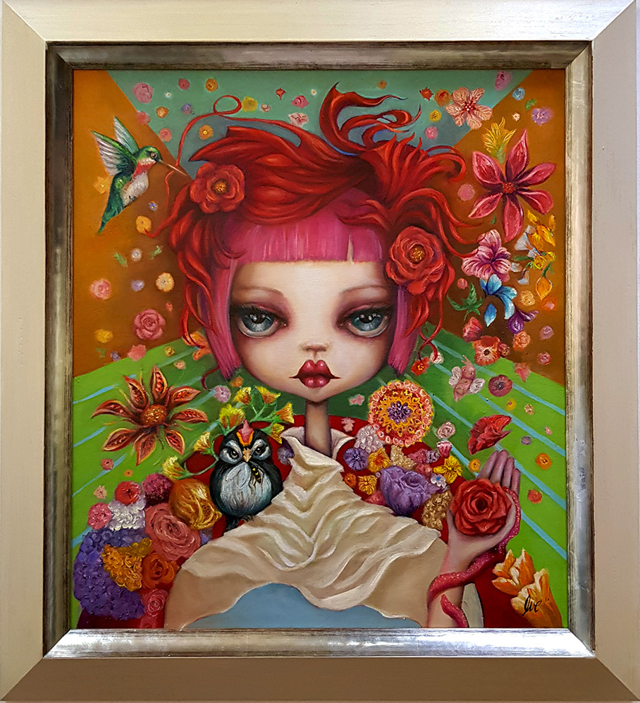 Adorned by spring’s gifts, hues of green, A hummingbird’s vibrant sheen. She relishes the season’s grace, A serene expression on her face.